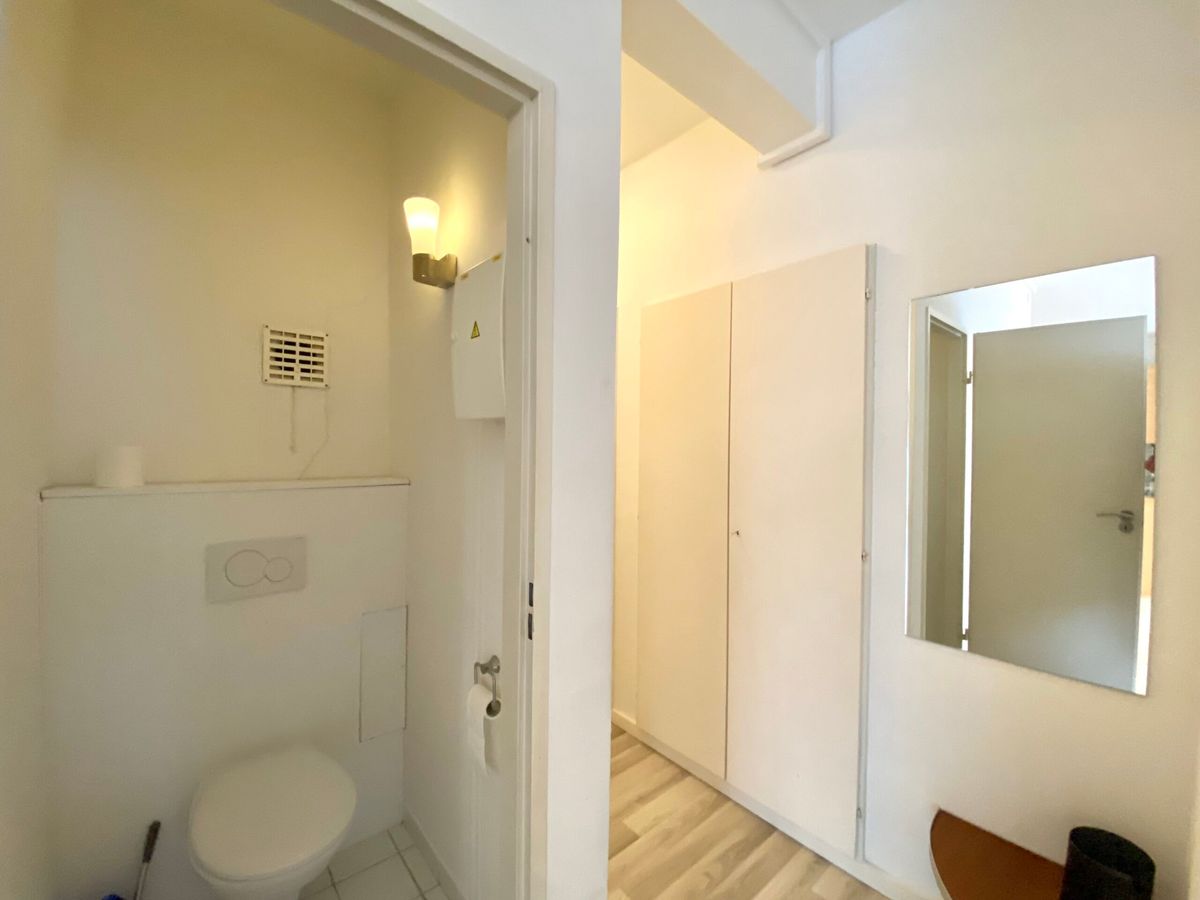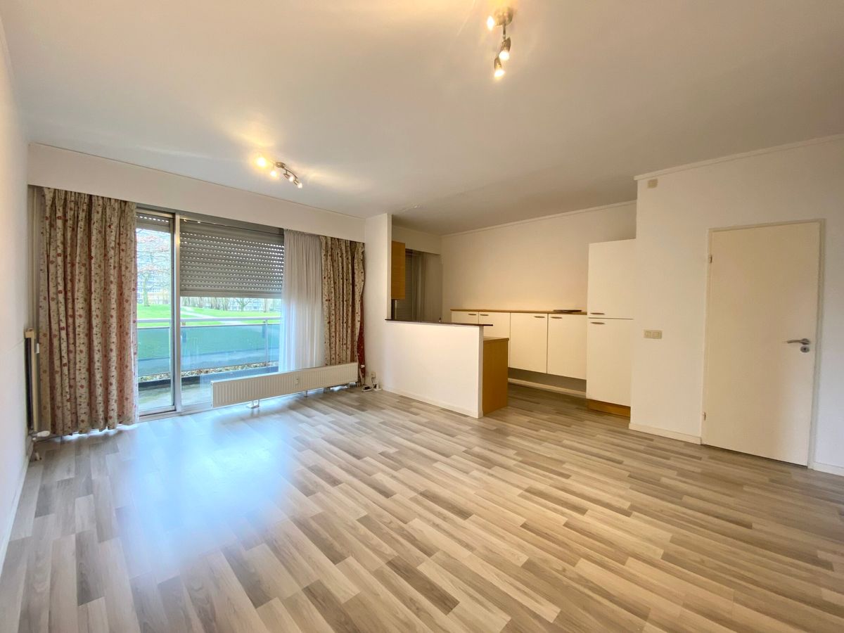 Appartement rez-de-chaussée de ±58m² comprenant un hall d’entrée, salon avec cuisine équipée, salle de bains, une chambre avec armoire de rangement, wc separé et cave.