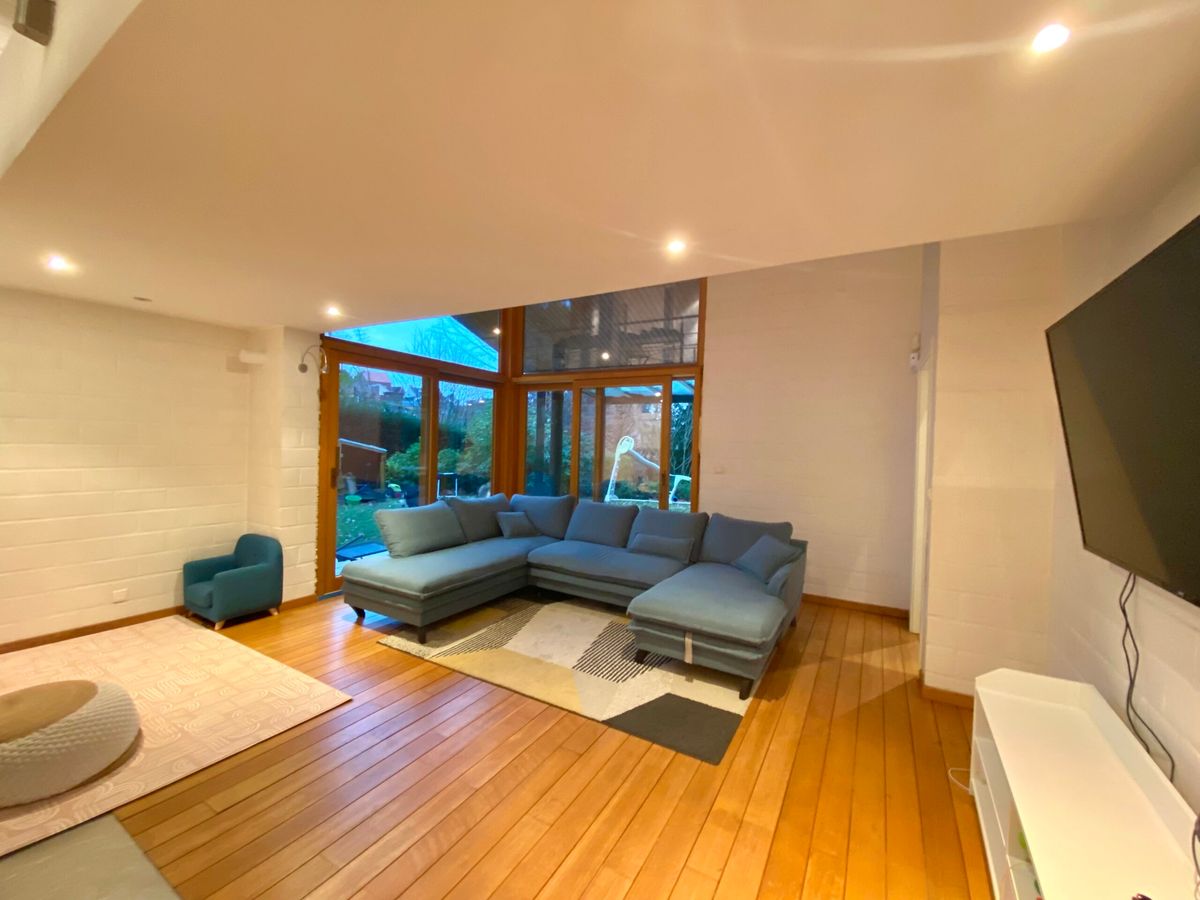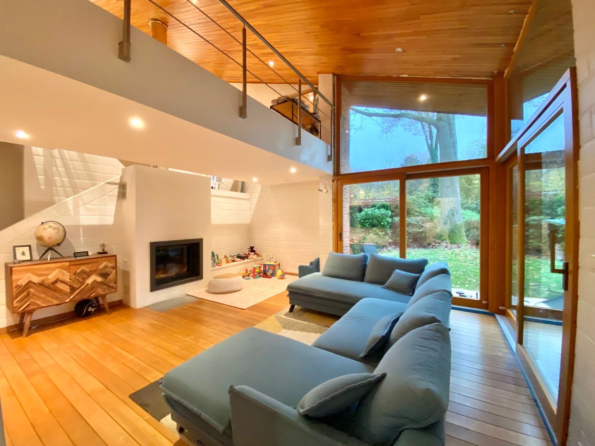 Située dans un quartier très calme et boisé, cette magnifique Villa d’architecte de ± 295m² brut (cfr peb) comprenant un hall d’entrée avec vestiaire, salon avec feux ouvert (cassette), grande veranda très agréable pour recevoir des invités, cuisine équipée + coin déjeuner, 2 wc séparé, hall de nuit, 4 chambres, dressing, bureau, 2 salles de douche, garage, cave avec placard encastré et buanderie, de nombreux emplacement de parkings extérieurs et carport 2pl avec bornes de recharge.